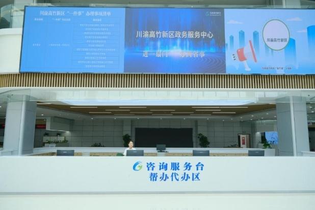2021年10月,四川、重庆联合批复成立川渝高竹新区税费征管服务中心。该中心集成“一块牌子、一个大厅、一个团队”,重庆市渝北区税务局、四川省广安市税务局共同派驻10名税务干部联合办公,让两地纳税人缴费人“进一家门,办两家事”。