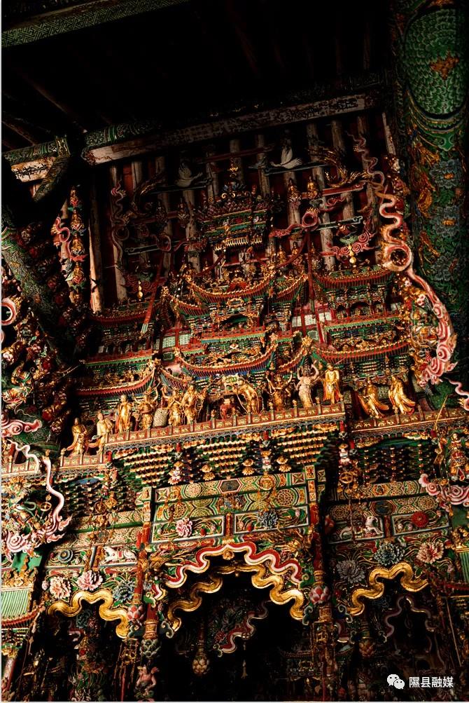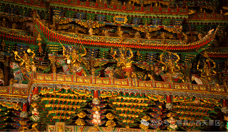 小西天内的悬塑和楼阁色彩运用丰富多彩