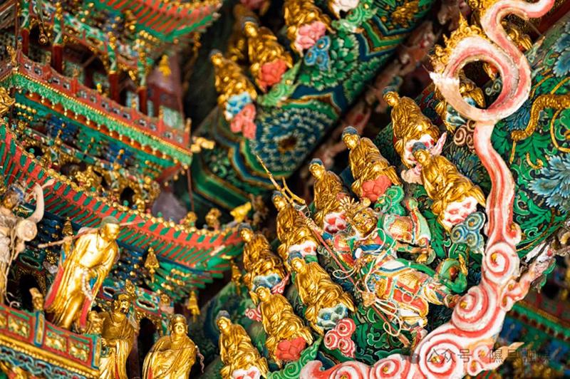 “殿上梁空千佛舞,辉煌悬塑耀心田。”