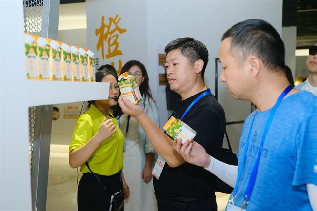 参与活动的媒体记者仔细端详派森百橙汁。华龙网 董静 摄