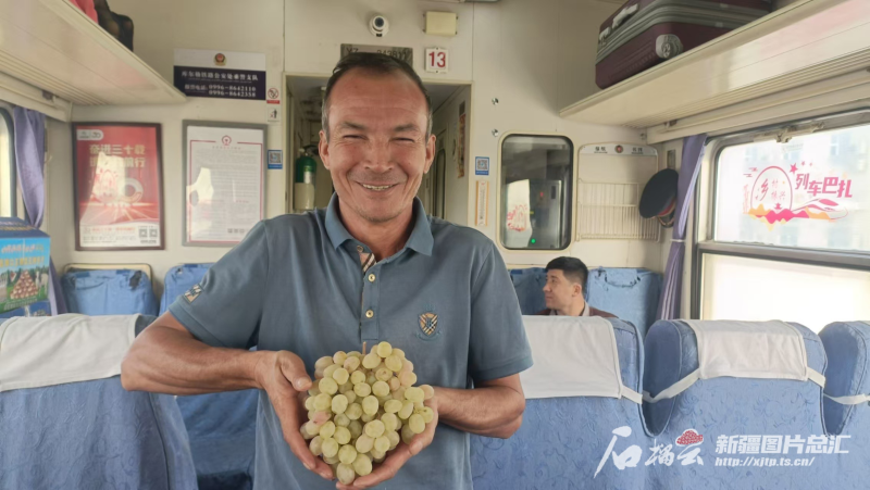 “我很喜欢火车上的这个巴扎,票价低,卖东西方便,冬暖夏凉条件好。”半小时内卖了5公斤石榴,和田县色格孜库勒乡色格孜库勒村的海日妮萨·阿卜来提高兴地说道,“我是村里第一个赶这个火车巴扎的,村里不少姐妹们也准备赶这个巴扎 。”