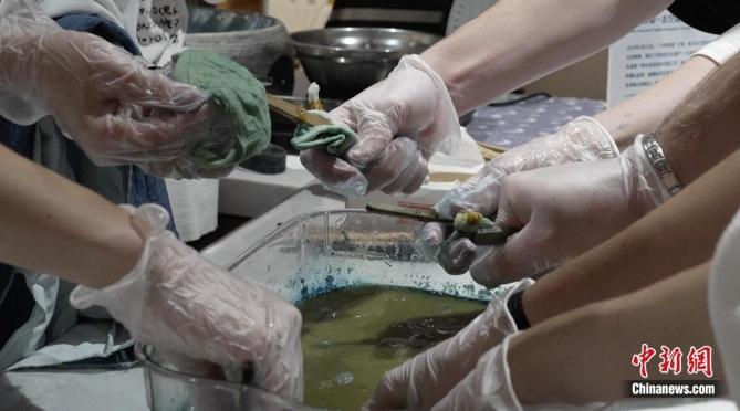 “洋弟子”体验高阳草木染。 张子怡 摄