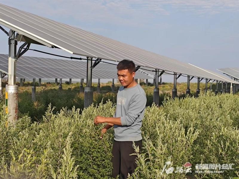 位于古尔班通古特沙漠边缘的134团,虽然常年有风沙,但这里得天独厚的光照条件却十分适合开发光伏发电。在光伏项目建设时,因早晚温差大,导致水汽凝结在光伏板上,水滴落土地后,竟慢慢萌生绿意。中新建电力集团天富能源金阳公司集控中心主任闫磊说:“周边种植户们敏锐捕捉商机,主动提出在光伏板下试种中药材,公司决定前三年免收土地租金。”