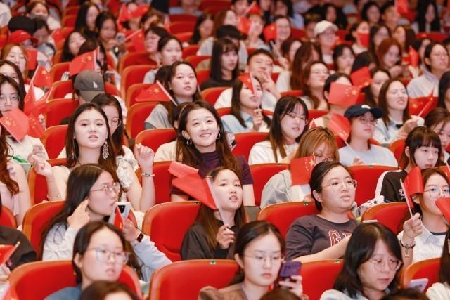 同学们见到奥运冠军非常开心。“看到冠军了,真是激动的一天”“雅妮笑容好甜美”“有生之年没想到见到雅妮本人”“我就这么水灵灵的和昌雅妮合影了”“妮妮好美,全场氛围好燃好炸”……昌雅妮一出场便引起了现场学生们的欢呼与喝彩。上台前,她和同学们亲密合影,现场一片欢腾。
