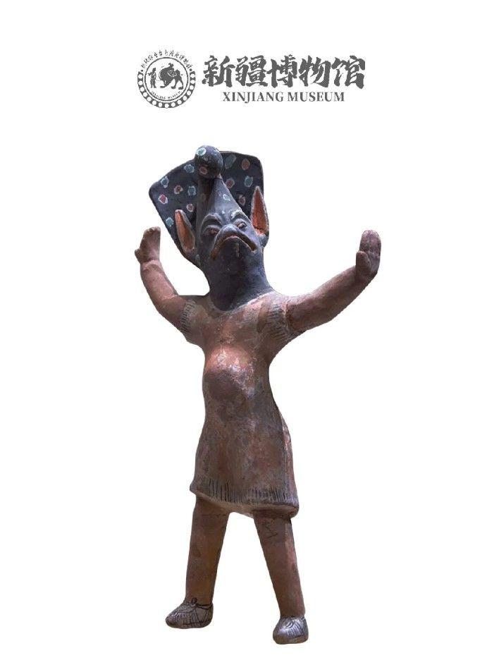 彩绘泥塑戴面具舞蹈俑。(新疆维吾尔自治区博物馆供图)