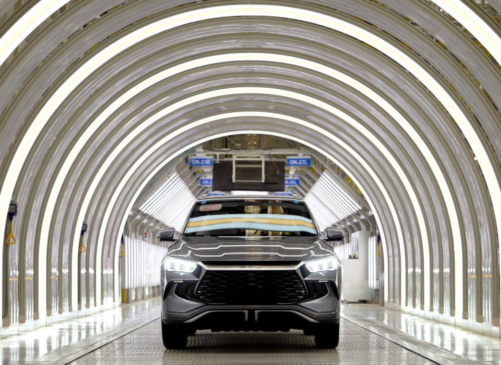 4月25日拍摄的郑州航空港区比亚迪总装工厂新能源汽车“宋Pro”生产线。新华社记者 李嘉南 摄