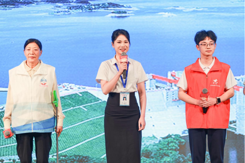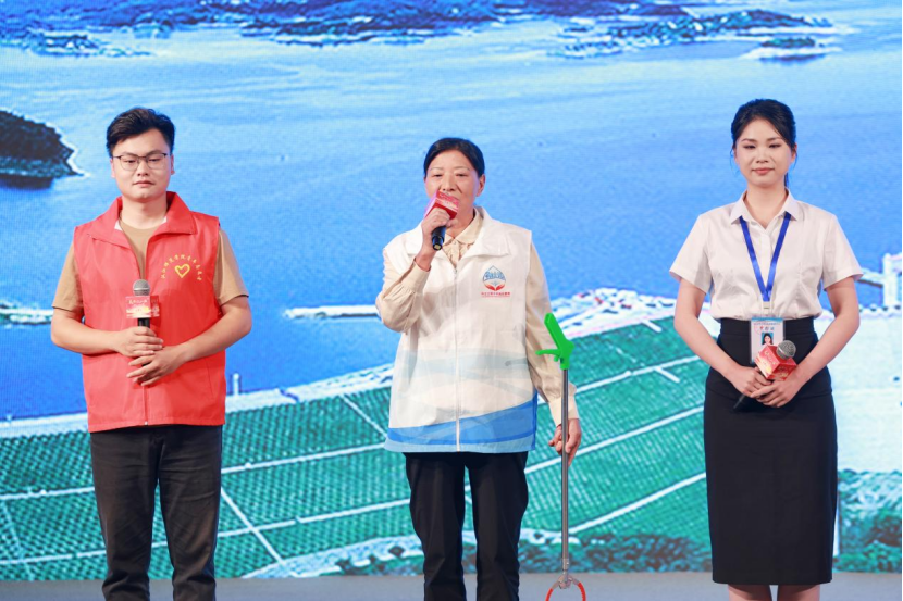 “河干净、水清,喝水的人更放心”,丹江口市六里坪镇财神庙村的护河员秦立萍说。秦立萍带着日常巡河的工具上台分享,这个捡垃圾的夹子,她出门随身带着,看到河岸旁边的垃圾随时捡,她说“我们做的是捡垃圾的脏活,但我觉得也是最‘干净’的事。”