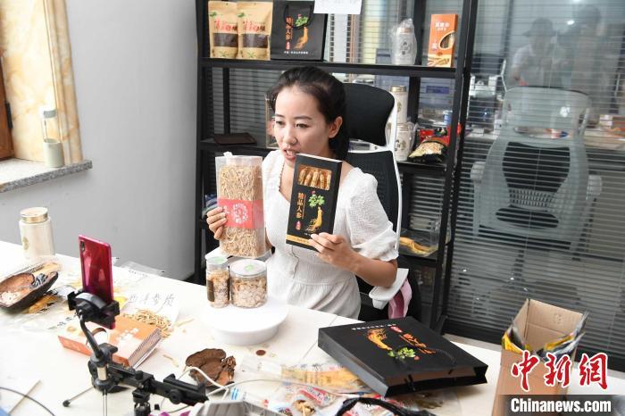 吉林参商正在网络平台直播销售人参。 张瑶 摄
