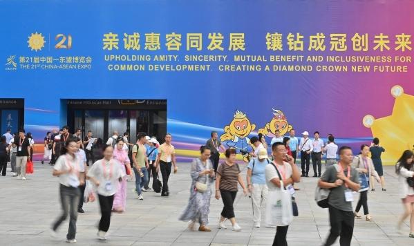 在本届中国-东盟博览会上,来自东盟成员国的高级官员称赞中国与东盟的合作是伙伴关系的典范,在共促地区发展与繁荣方面发挥了重要作用。