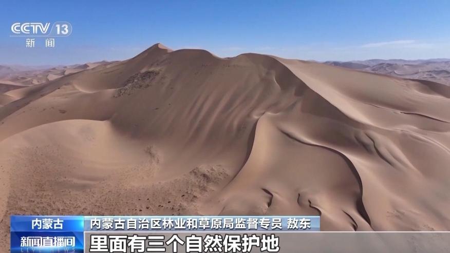 内蒙古自治区林业和草原局监督专员 敖东:列入世界遗产名录的巴丹吉林沙漠—沙山湖泊群自然遗产地里面有三个自然保护地,自治区通过建立自然保护地管理机构,完善规章制度,持续加大保护的投入,强化监督管理,坚持对外合作,不断推进自然保护地体系建设,使众多珍贵的自然遗产得到了切实保护。