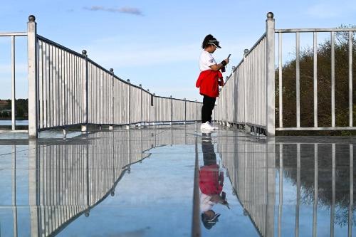 这是上官地村中围湖而建的玄武湖观光栈道(9月24日摄)。新华社记者 王松 摄
