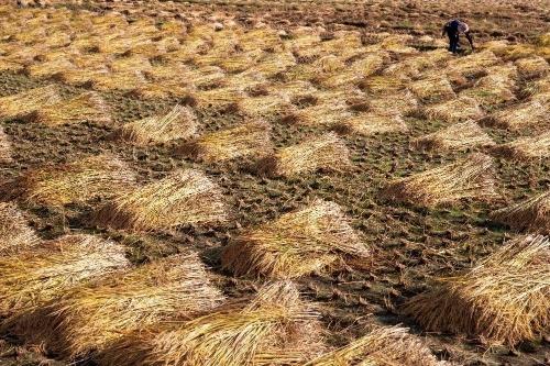 9月26日,在上官地村的一处水稻田里,村民正在收割水稻。新华社记者 张涛 摄