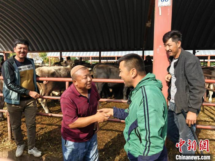 中新网新疆伊犁9月28日电 每周一、三、五是新疆“黄公巴扎”的巴扎日(巴扎,维吾尔语,意为集市),也是当地的“超级牛市”——上万头牛聚集于此,等待新疆以及来自山东、陕西、云南等地的客商挑选购买。