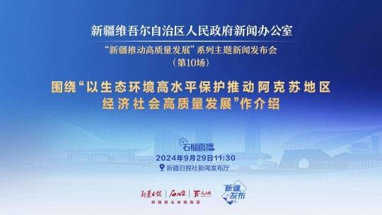 2024年9月29日11:30,新疆新闻办举行“以生态环境高水平保护推动阿克苏地区经济社会高质量发展”系列主题新闻发布会(第10场),围绕“以生态环境高水平保护推动阿克苏地区经济社会高质量发展”作介绍并答记者问。