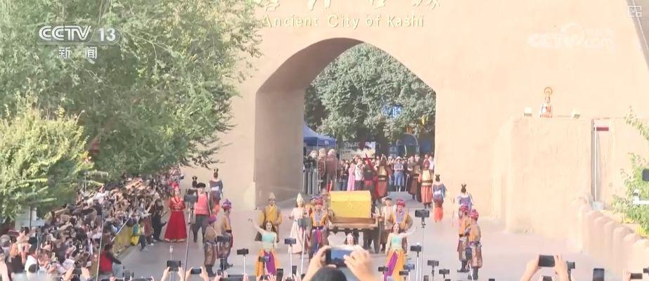 一大早,喀什古城的开城仪式迎来四面八方游客,具有喀什浓郁特色的开城迎宾舞吸引成千上万的拍客们争相拍摄。傍晚时分,在喀什古城街道的游客们感受着国庆节日来临前的欢乐喜庆氛围。
