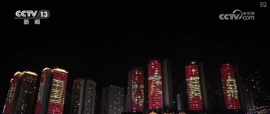 在重庆市奉节县、永川区等地,纷纷利用城市楼宇开启国庆灯光秀。变换多彩的灯光和图案,将建筑物装点得美轮美奂,营造出祥和喜庆的节日氛围。