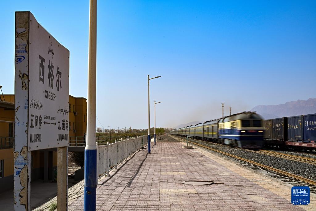 一列火车驶过西格尔站(9月24日摄)。新华社记者 陈朔 摄