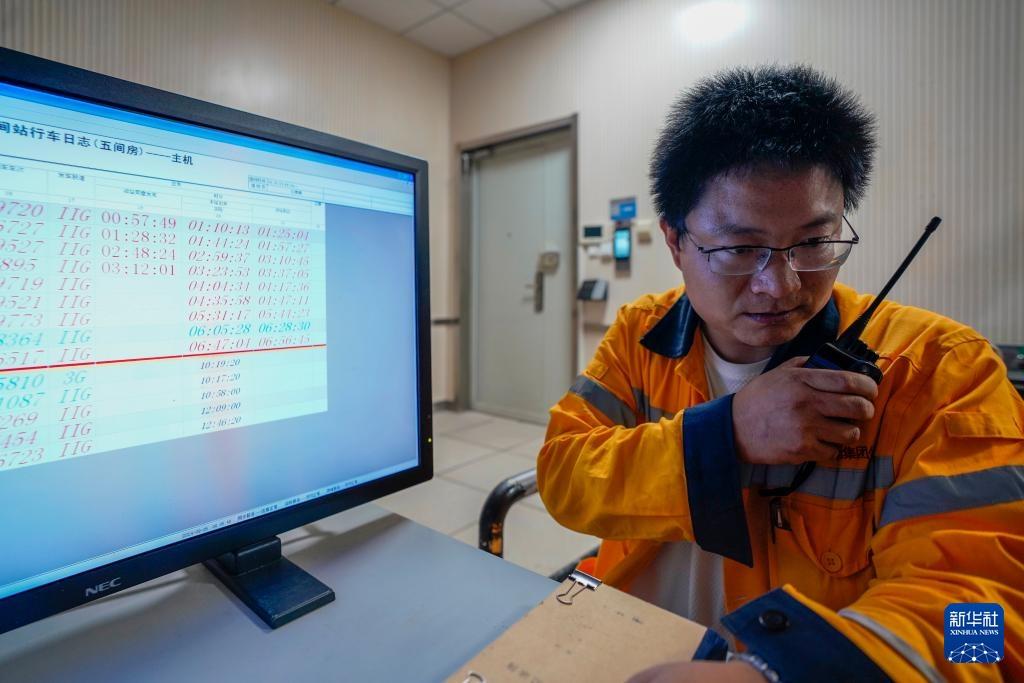 清晨,在五间房车站调度室,西格尔综合维修车间驻站联络员姚卫林在指挥铁道维保作业(9月26日摄)。新华社记者 陈朔 摄