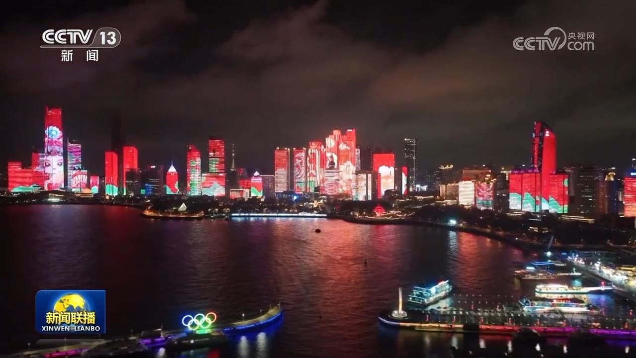 璀璨绚丽的灯光,点亮城市夜空。在山东青岛、湖北十堰、河北石家庄、四川宜宾等地,以“庆祝中华人民共和国成立75周年”为主题的灯光秀,营造出浓厚节日氛围。
