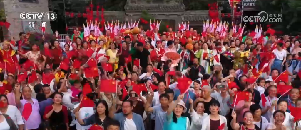 在古城美食街,羊肉饸饹、韩城花馍等特色美食映入眼帘,游客们在品尝美味的同时,还可以沉浸式体验包馄饨、做花馍。活动现场众人齐唱《歌唱祖国》等歌曲,将气氛推向高潮。