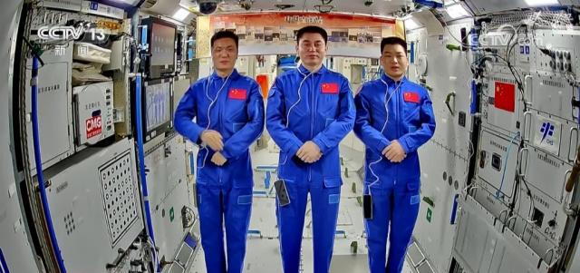 央视网消息:10月1日上午,总台演播室连通了正在中国空间站值守的神舟十八号乘组。目前,航天员叶光富、李聪、李广苏在太空中出差已经超过5个月了。三位航天员都是第一次在空间站迎接国庆,来听一下他们的感受。