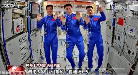 神舟十八号航天员乘组称:“我们祝愿伟大的祖国繁荣昌盛、人民幸福安康,谢谢大家,我们东风着陆场见!”
