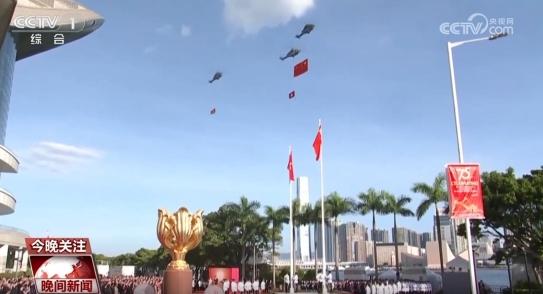 10月1日,香港特区政府举行了升旗仪式,五星红旗和香港特区区旗在金紫荆广场冉冉升起。之后,悬挂着国旗和区旗的直升机飞过维多利亚港上空,轮船在维港水面喷洒水柱敬礼。