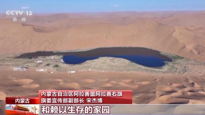 内蒙古自治区阿拉善盟阿拉善右旗旗委宣传部副部长 宋杰博:因为这个泉水源源不断地补给巴丹吉林沙漠里的湖泊,这里也成为牧民赖以生存的土地和家园。