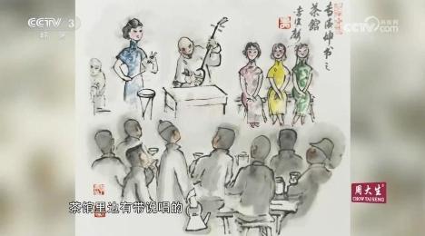 画家 王敬:滨老他画过十几种老北京的各类的市井文化的茶馆,有不同类型。有茶馆里演杂耍,演相声,还有专门唱大鼓的茶馆,有带小吃的,还有按现在我们讲就是带便餐的,一边听书,一边可以吃饭。各种各样,五花八门的。滨老通过画笔给它记录下来了,这样使我们年轻的一代了解过去北京丰富的老百姓的文化生活,日常生活。