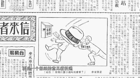 李滨声:这种情况下,领导叫我画一个插图,画了几次都比较一般,后来我就想用漫画形式画,画了一个叫“扣大帽子”,是一个人写了一封来信,要向一个报纸的意见箱投递,可后边有一个人拿一个大帽子把他扣住。题目叫《无组织无纪律》,这个画见报以后反响非常大。