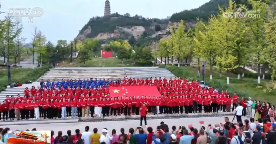 在陕西延安宝塔山下,来自全国各地的游客手举国旗,齐声唱响《我和我的祖国》。大型红色沉浸式歌舞剧《延安十三年》,让游客们身临其境感受波澜壮阔的革命历史。