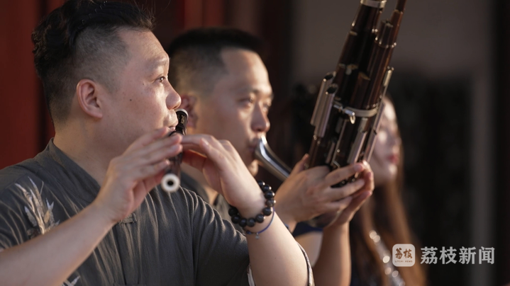 大学期间,周舟来到江南丝竹馆实习,与陈建中老师合奏,师徒俩从那时便开始惺惺相惜。陈建中评价周舟很“踏实”:“他是科班出身,但是即便是规模很小的演奏,他也会主动提出要上台,珍惜每一次锻炼的机会。”多年后,周舟担任太仓市文化馆副馆长,与陈建中再次合作,将多个异地的江南丝竹乐团组合在一起,办起了“江南丝竹传承音乐会”。至今,他们已成功举办八场音乐会,每一场合奏都是一次心灵的共鸣,不仅展现了江南丝竹的魅力,也为这一文化遗产的传承添上了浓墨重彩的一笔。