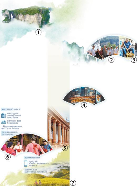 湖南省张家界市自然环境得天独厚,是深受境外游客青睐的热门旅游地。今年上半年,张家界入境游客达91万人次,同比2023年增长569%。