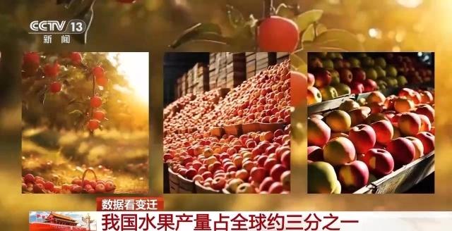 数据看变迁,关注老百姓餐桌上的寻常物——水果。75年间,水果从老百姓餐桌上的稀客变成日常饮食中寻常的“小伙伴”,我国已成为全球最大的水果生产国和消费国,水果产量占到了全球的约三分之一。