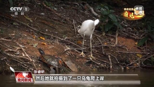 张睿昕:那一年萌萌5岁,我带着她到家里旁边的公园去调试设备,她可能是耳濡目染多了,就问我说,爸爸我能玩一下这个机器吗?我就是那种心大的爸爸,我就把那个三脚架调到她可以操作的高度,然后她就拍摄到了一只乌龟爬上岸。