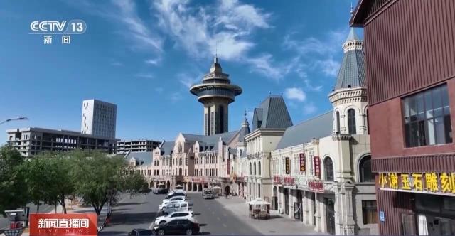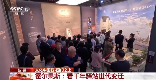 总台央视记者 王莉:从霍尔果斯第六代国门向北,就来到了第五代国门。如今第五代国门虽然已经不再承担国门的功能,但是当地把它改建成了霍尔果斯国门文化展示馆,通过文字、图片、视频向大家讲述着国门的变迁,口岸的历史。