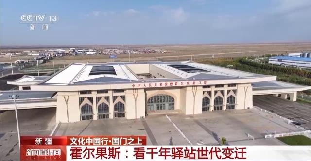 总台央视记者 王莉:这里是位于新疆伊犁哈萨克自治州的霍尔果斯公路口岸,这座巍峨雄伟的建筑就是霍尔果斯第六代国门,这里与哈萨克斯坦隔河相望,是中国向西开放的重要窗口和连接亚欧大陆的“黄金口岸”。千年以前,霍尔果斯就是古丝绸之路上的重要驿站,一百多年前,霍尔果斯公路口岸正式通关,从20世纪50年代的第一代国门,到如今的第六代国门,国门的变迁,见证着霍尔果斯的这座边境城市的蓬勃发展。