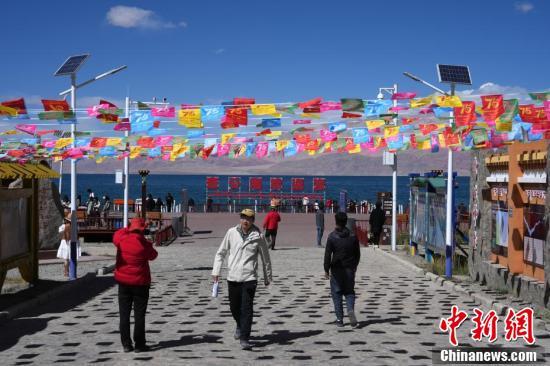 10月4日。“十一”国庆假期,不少游客来到西藏日土县班公湖游玩。