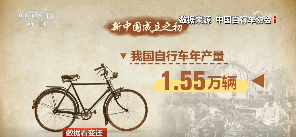 央视网消息:你知道吗,新中国刚刚成立的时候,自行车对于普通老百姓来说,还是“奢侈品”。而如今,中国不仅是自行车生产大国,还成为拥有众多健身者的“骑行大国”。今天的《数据看变迁》,就让我们来看75年自行车的故事。