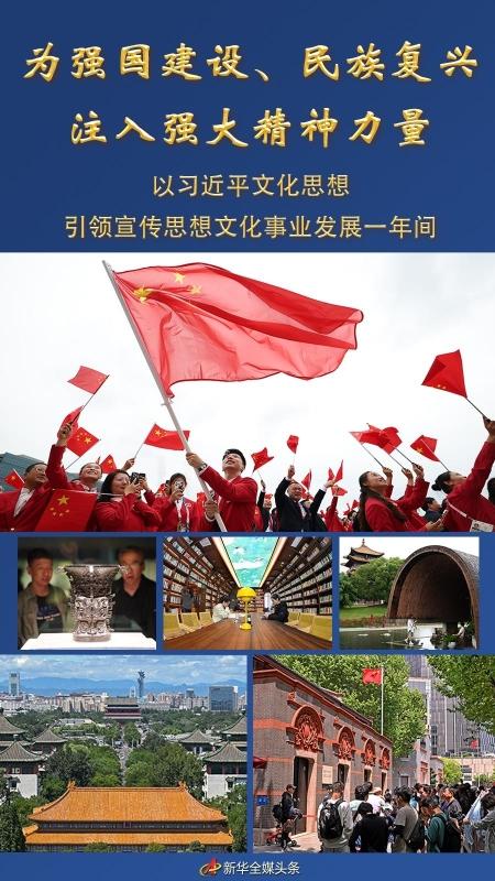 一年来,在以习近平同志为核心的党中央坚强领导下,在习近平文化思想科学指引下,中华优秀传统文化、革命文化、社会主义先进文化在新时代伟大实践中融汇激荡,为党和国家事业发展提供了坚强思想保证和强大精神动力。