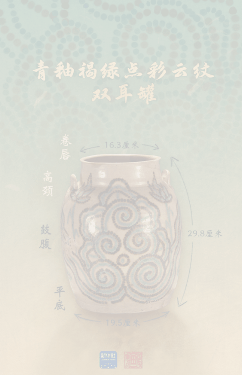 青釉褐绿点彩云纹双耳罐