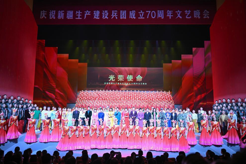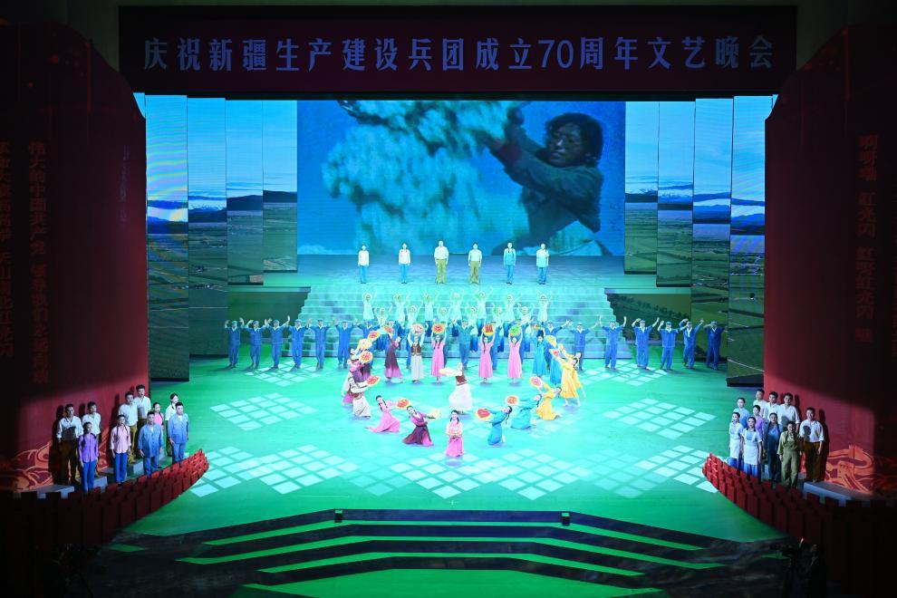 10月6日,庆祝新疆生产建设兵团成立70周年文艺晚会《光荣使命》在乌鲁木齐文化中心大剧院举行。