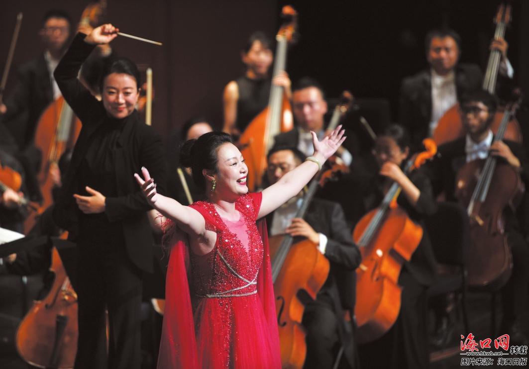 红旗如海,举国欢腾。音乐会紧扣国庆主题,交响合唱《今天是你的生日》、女高音独唱《我爱你,中国》《我的中国心》,表达海口人民对祖国的祝福之情。
