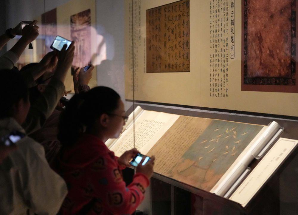10月1日,游客在辽宁省博物馆观看展览。新华社记者 李钢 摄