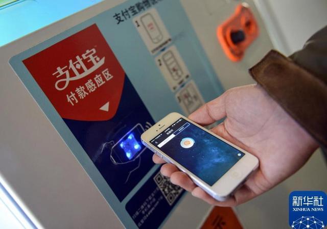 2014年1月10日,一名支付宝员工在办公楼内的购物机前演示手机支付流程。