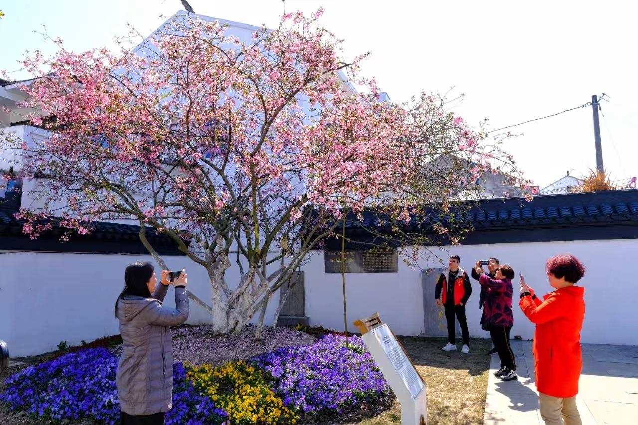 从常州出发,来到宜兴,这里的山水让苏轼赞不绝口,曾写下“买田阳羡吾将老,从来只为溪山好”的诗句。国庆节假期,宜兴和桥镇的邵氏祠堂吸引众多游客打卡。据阳羡历史文化研究专家宗伟方介绍,900多年前,苏轼曾来到此处,见好友邵民瞻的新宅构筑精巧,花木扶疏,题写“天远堂”匾额相赠,保存至今。而邵氏祠堂内有一棵海棠树,枝叶繁茂、生机盎然,相传是苏轼亲手所植。