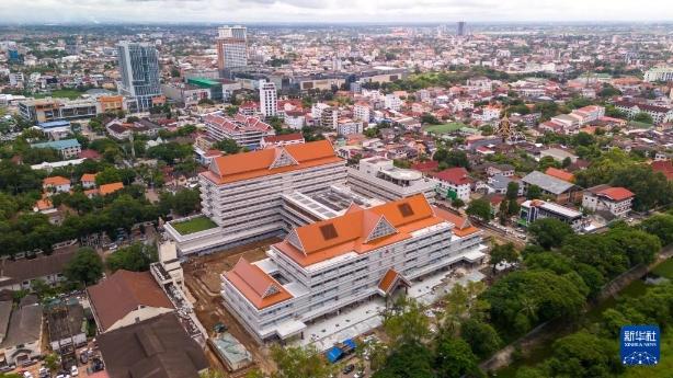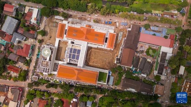 这是9月11日在老挝首都万象拍摄的中国援老挝玛霍索综合医院(无人机照片)。新华社发(凯乔摄)