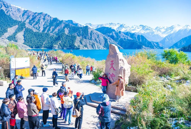 10月1日,游客游览天山天池风景区 (央广网发 何龙 摄)