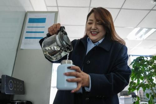 仁增曲珍在办公室倒水(9月29日摄)。新华社记者 晋美多吉 摄