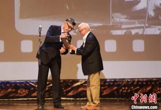 2022年5月21日,在俄罗斯第二十届奥泽罗夫国际军事电影节闭幕式上,中国电影《跨过鸭绿江》荣获电影节金剑奖最佳视觉效果奖。中新社记者 田冰 摄